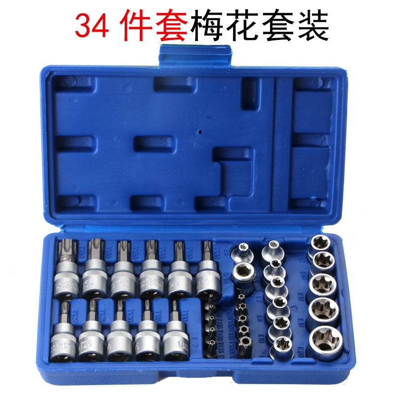 Soket obeng bintang Plum Blossom 34 buah, alat kombinasi sekrup hex 3/8 "kunci pas ratchet koneksi 5/16"
