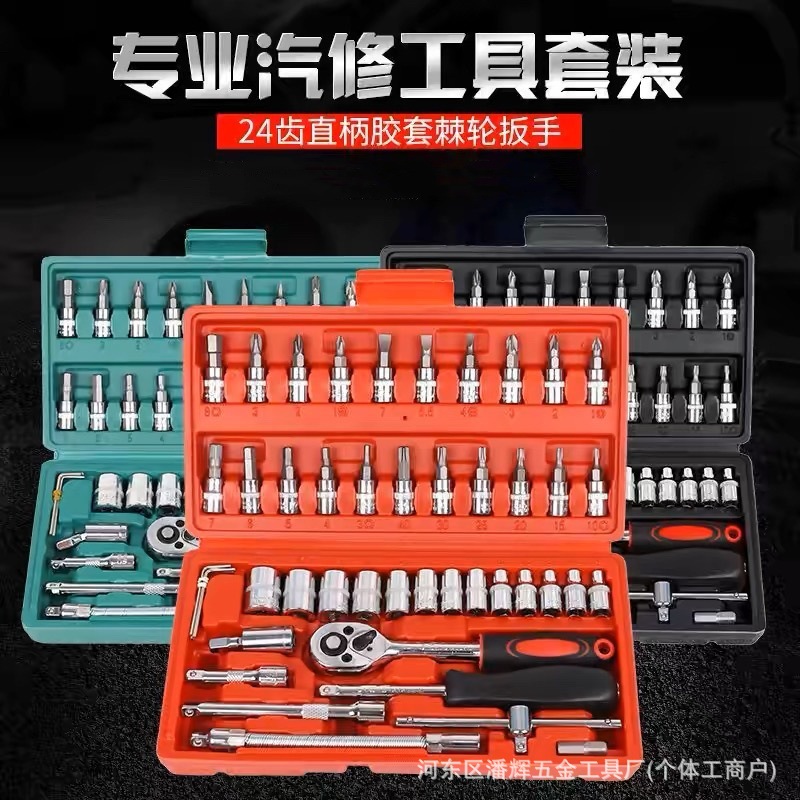 Set 46 Set 1/4 Set Set Set Kunci Ratchet Set Alat Perangkat Keras Kombinasi Alat Perbaikan Mesin Set Alat Perbaikan Mobil