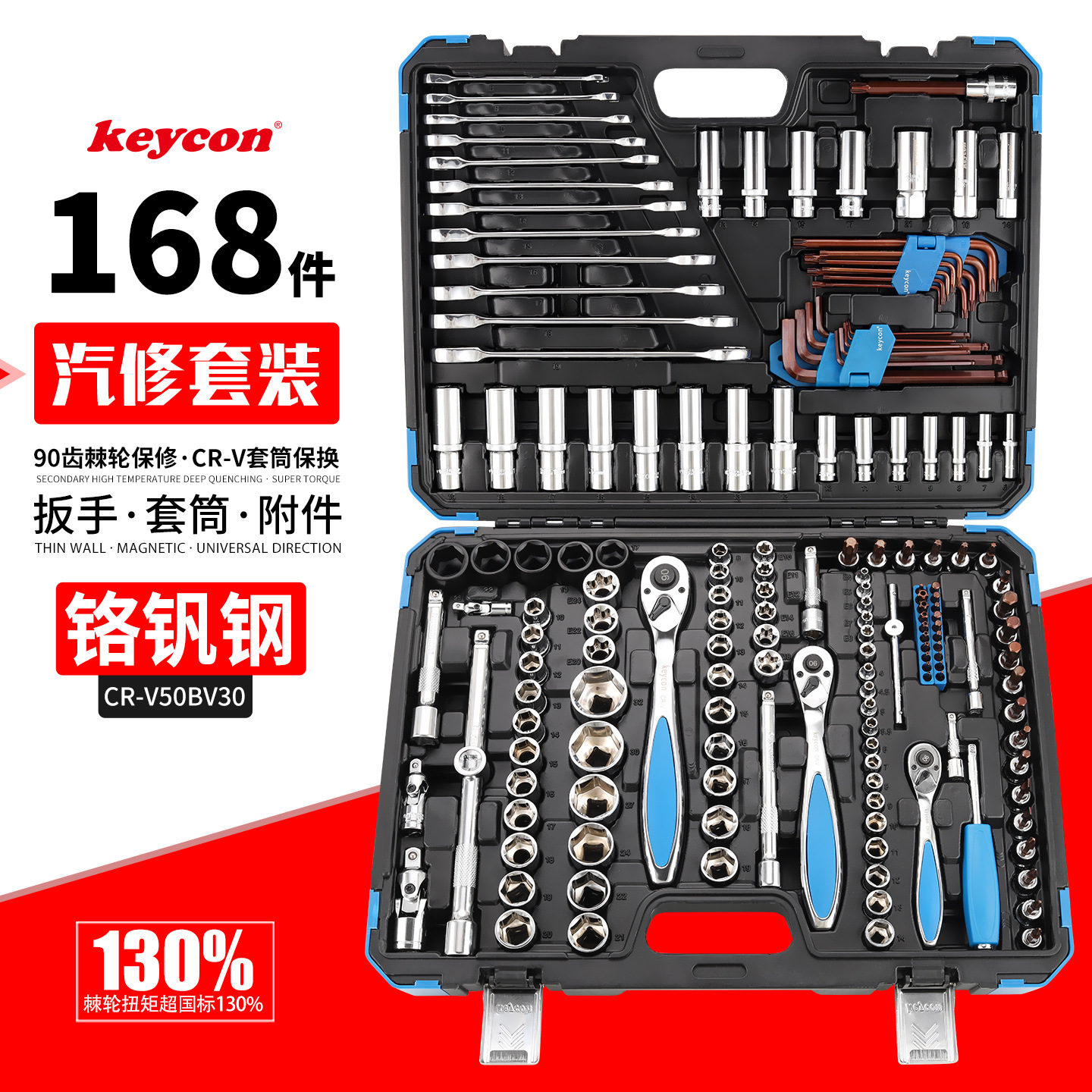 Keycon jinsai kunci pas soket perbaikan otomatis, set batang penghubung kepala batch ratchet tujuan ganda, kombinasi set kunci pas soket perbaikan otomatis 168 buah