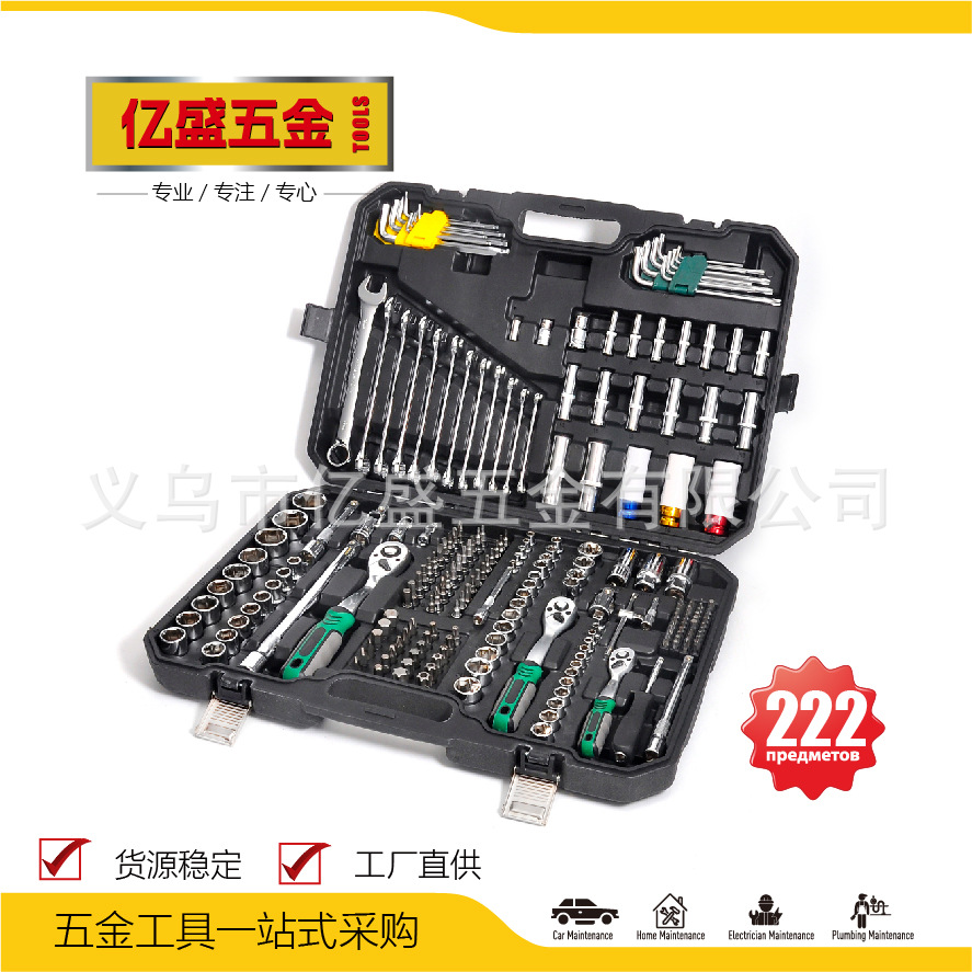 222PCS Lengan Mesin Perbaikan Mobil Perakitan Perangkat Keras Kotak Besi Kunci Ratchet Kepala Konversi Universal