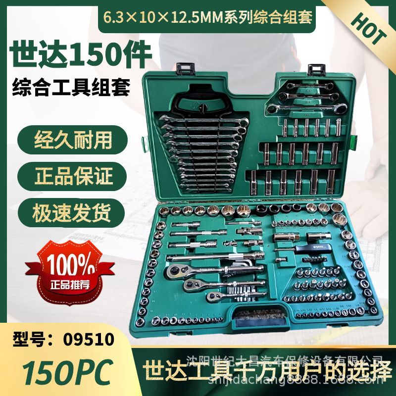 Syida 09510 syida setelan perbaikan mobil, kunci pas unik, ratchet, pegangan ringan 150 buah