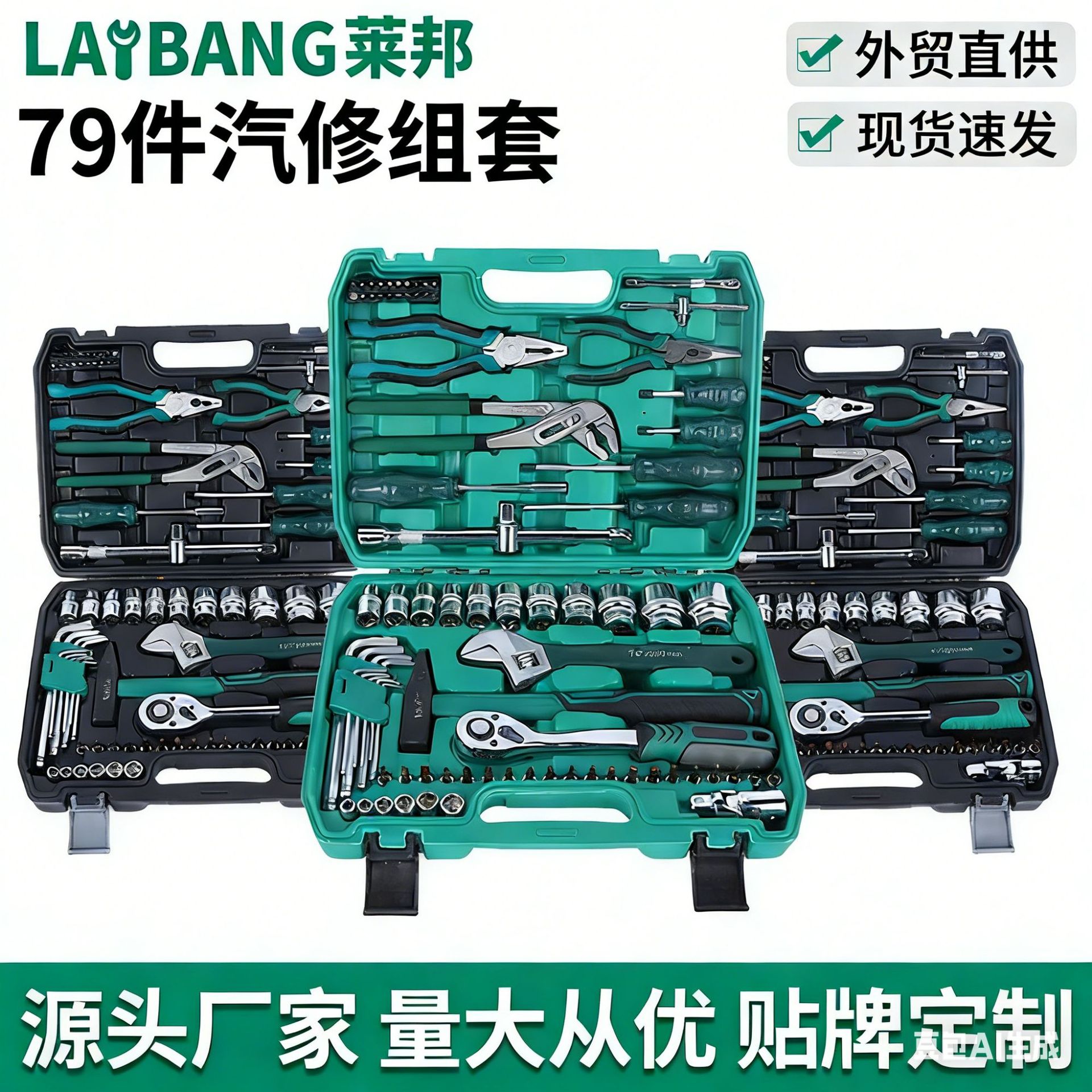 Kit perbaikan mobil profesional 79 buah, kotak alat perbaikan mobil, kunci pas ratchet, pemeliharaan otomatis, alat perbaikan khusus