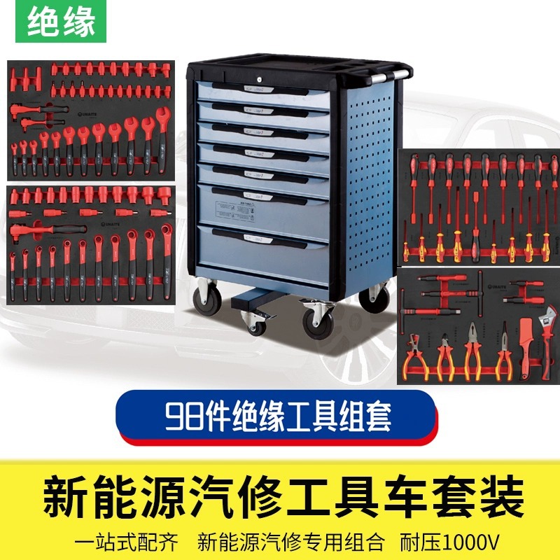 Setelan alat insulasi energi, 98 buah setelan peralatan pemeliharaan kendaraan energi baru, perbaikan mesin troli, isolasi VDE