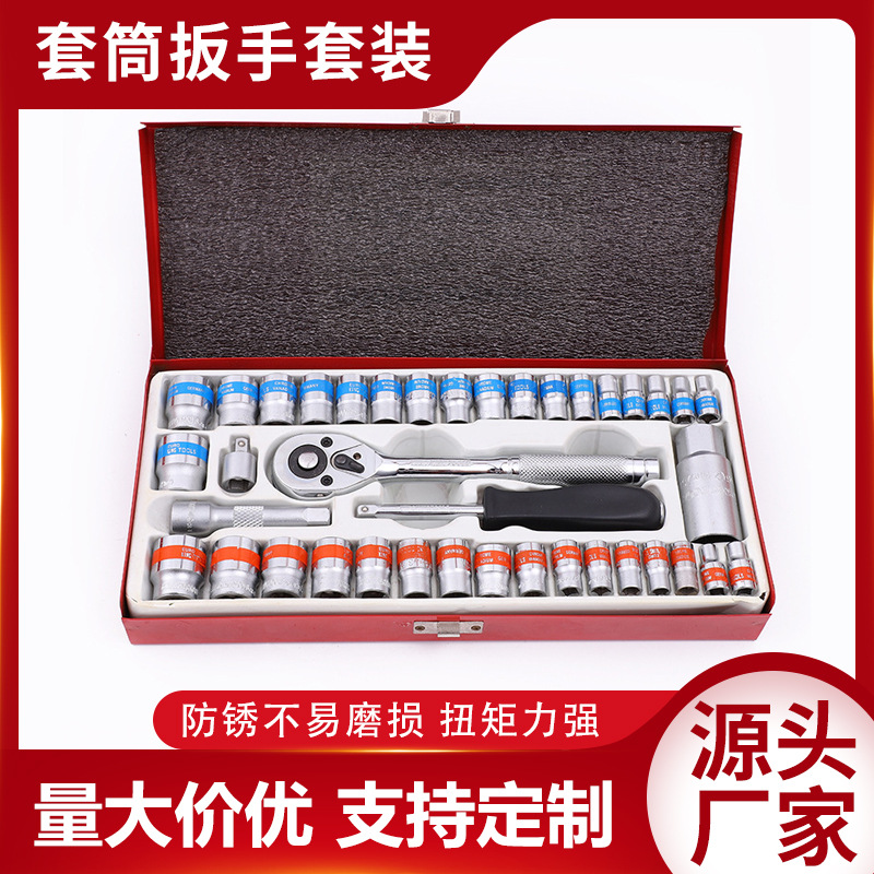 32-piece auto perbaikan lengan kombinasi alat setelan 1/2 besar terbang ratchet kunci perangkat keras auto perlindungan toolbox batch kepala