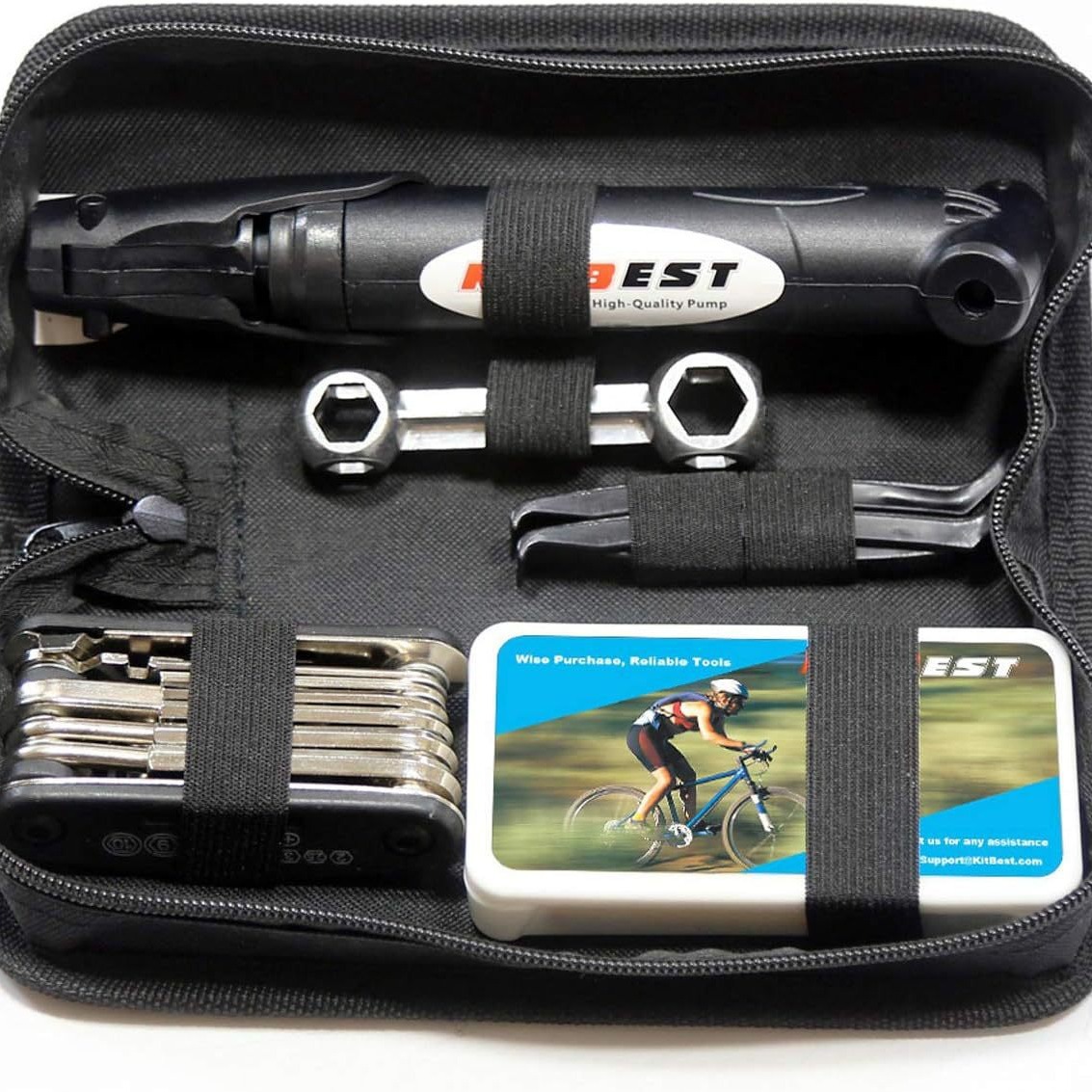 Set peralatan reparasi sepeda 16-in-1, aksesori sepeda gunung silinder gas mini, kunci pas kit perbaikan ban 16-in-1