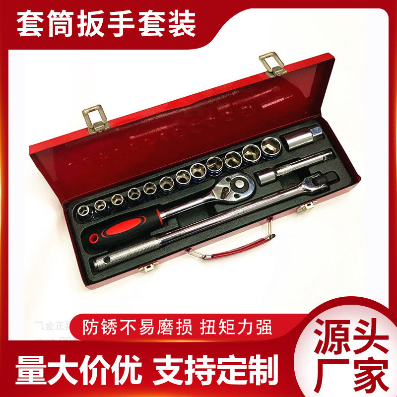 Setelan perbaikan mobil, 16 buah soket ratchet wrench mobil perbaikan multi-fungsi lengan kombinasi kotak alat kotak besi