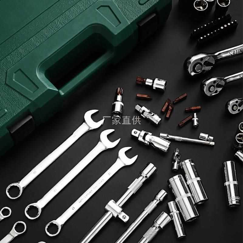 Set alat perbaikan mobil multifungsi, kotak peralatan reparasi soket kunci pas mobil besar, sedang dan kecil