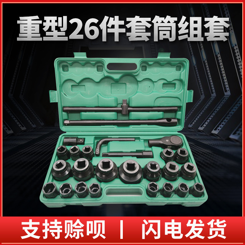 Kunci soket baja khrom vanadium, kunci pas soket tugas berat 26 buah set alat perangkat keras setelan alat perlindungan otomatis