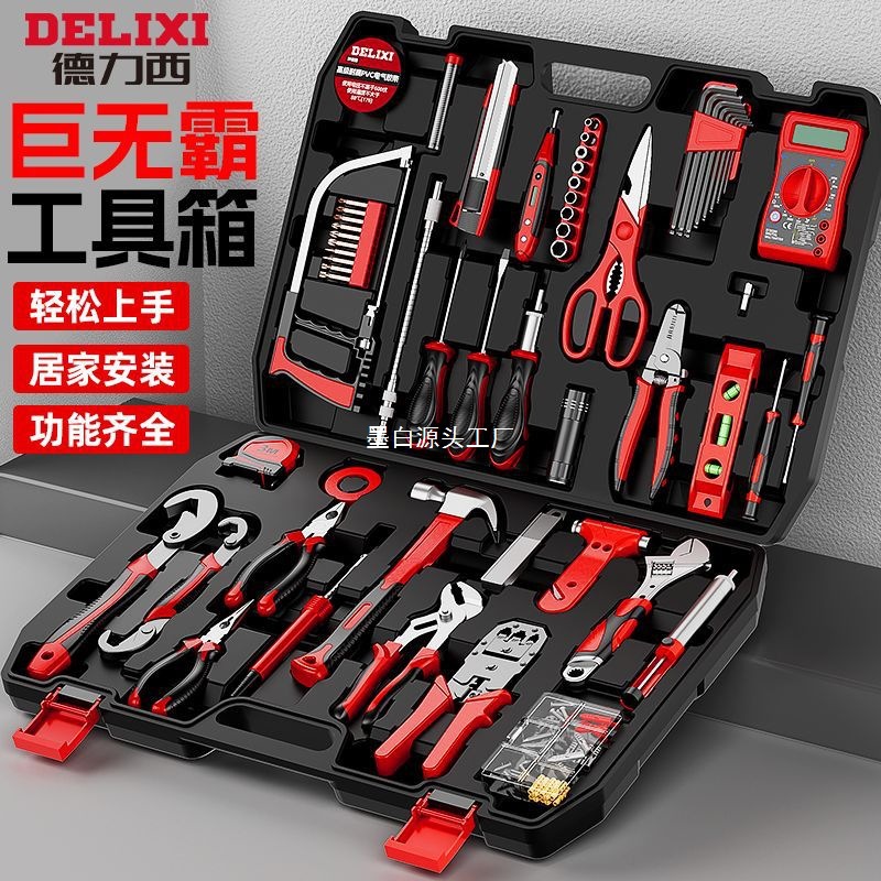Delixi Peralatan Multifungsi Set Kotak Peralatan Perangkat Keras Manual Peralatan Rumah Tangga Set Perakitan Perakitan dan Perbaikan