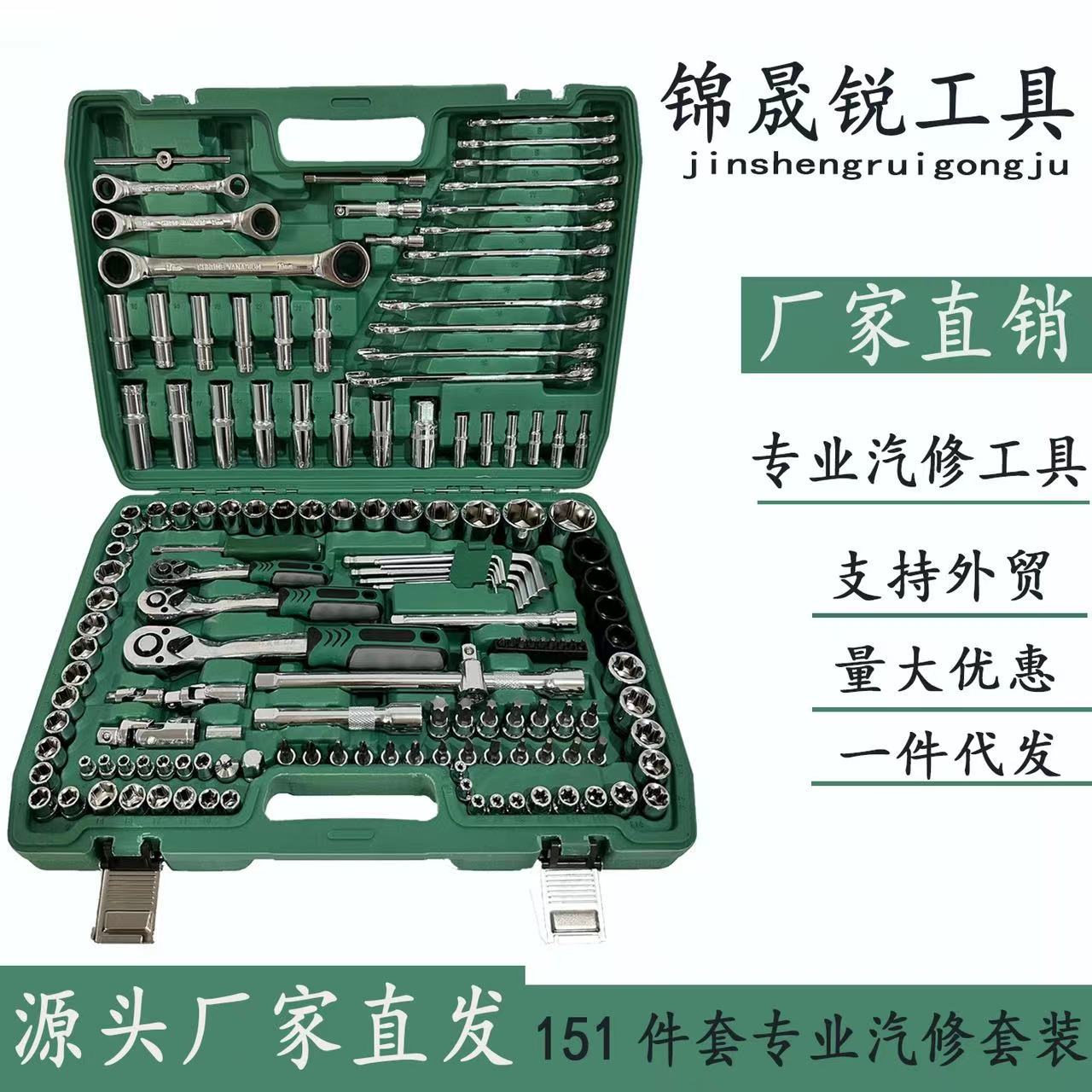 Set alat perbaikan mobil 150 buah, set kunci pas soket kombinasi kotak alat perbaikan