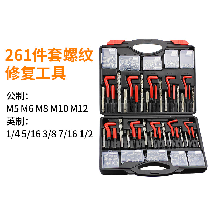 Alat perbaikan ulir, 261 buah set mata bor keran, alat perbaikan lengan sekrup mengetuk sendiri tangan