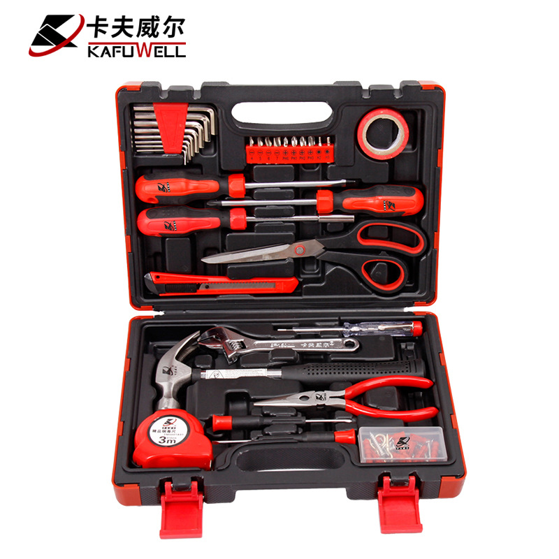 Set alat manual baja karbon Kraftwell, kotak peralatan perbaikan rumah, set alat tukang listrik, penyimpanan