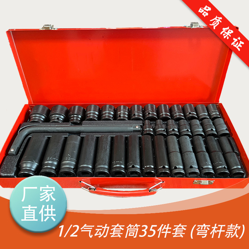 Set alat perbaikan mesin uap, 12.5MM seri 1/2 pendek diperpanjang pneumatik lengan dipertebal 35-piece batang melengkung batang L kombinasi alat perbaikan mesin uap
