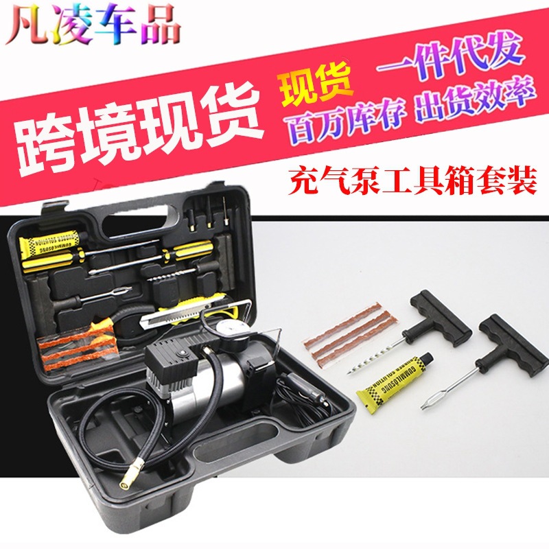 Pompa tiup bar ganda dengan kotak alat, obeng alat perbaikan ban darurat mobil pompa mobil mini