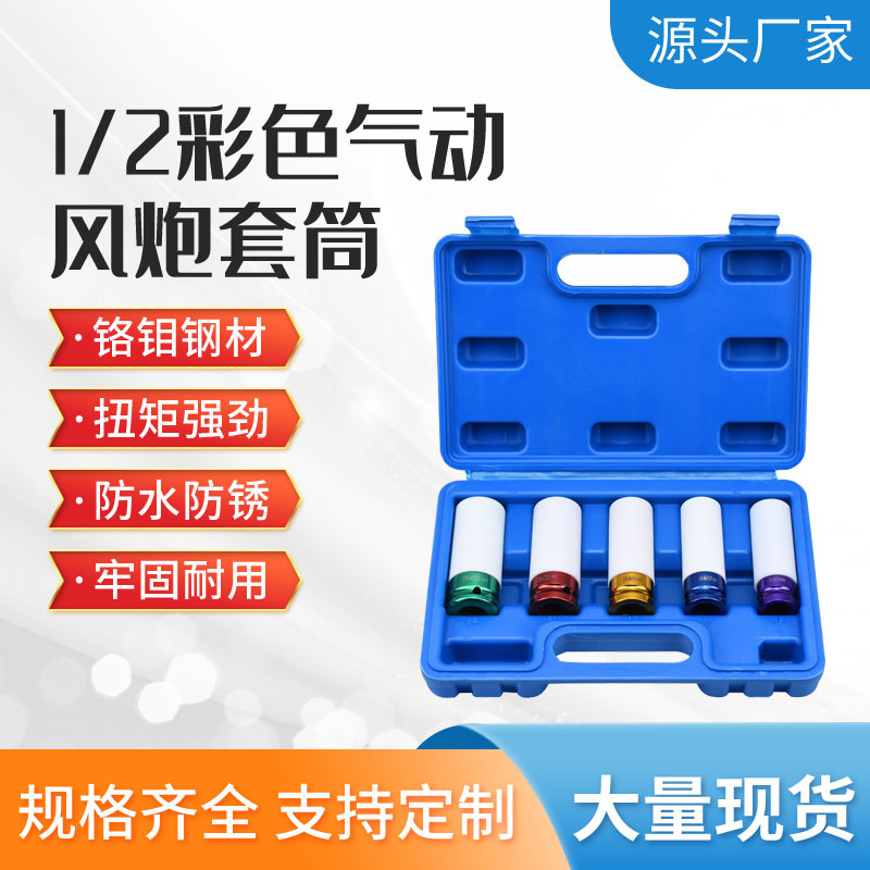 Lengan pelindung ban 1/2 warna electroplating, soket listrik diperpanjang pneumatik, kunci pas bongkar hub lengan kepala