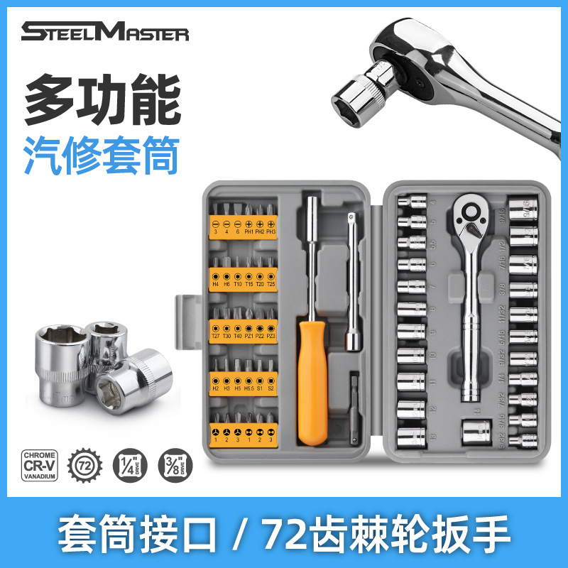 Kunci soket alat perbaikan otomatis, setelan batch kepala kunci ratchet alat perbaikan multifungsi kotak alat perangkat keras