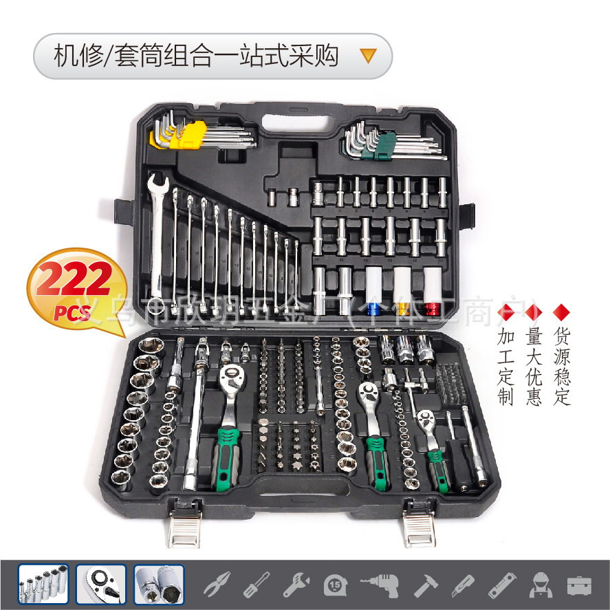 222PCS Set Alat Kombinasi Mekanis Kepala Rotary Set Kunci Ratchet Mobil