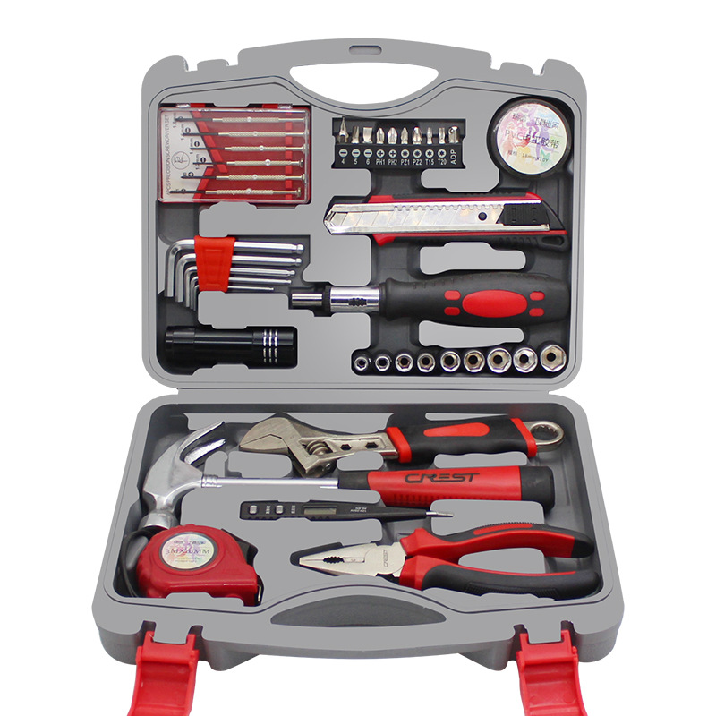 Kotak Peralatan keluarga merah setelan perangkat keras rumah tangga kombinasi hadiah pengiriman Real Estate set peralatan 39-buah
