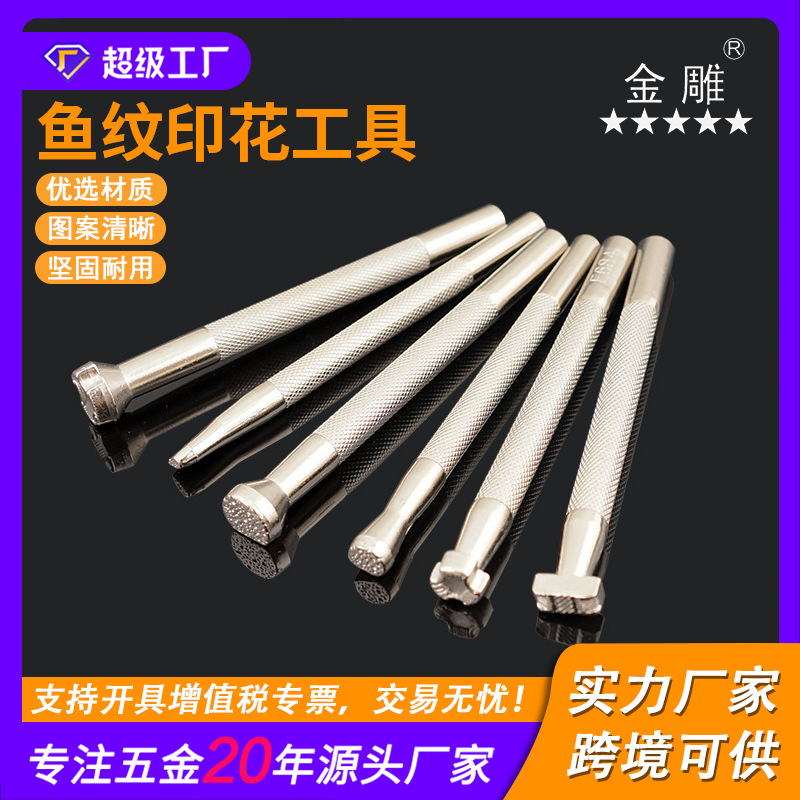 Alat cetak pola ikan ukiran kulit emas setelan 6 buah peralatan kulit pembuat seni kulit buatan tangan kulit kulit kecoklatan