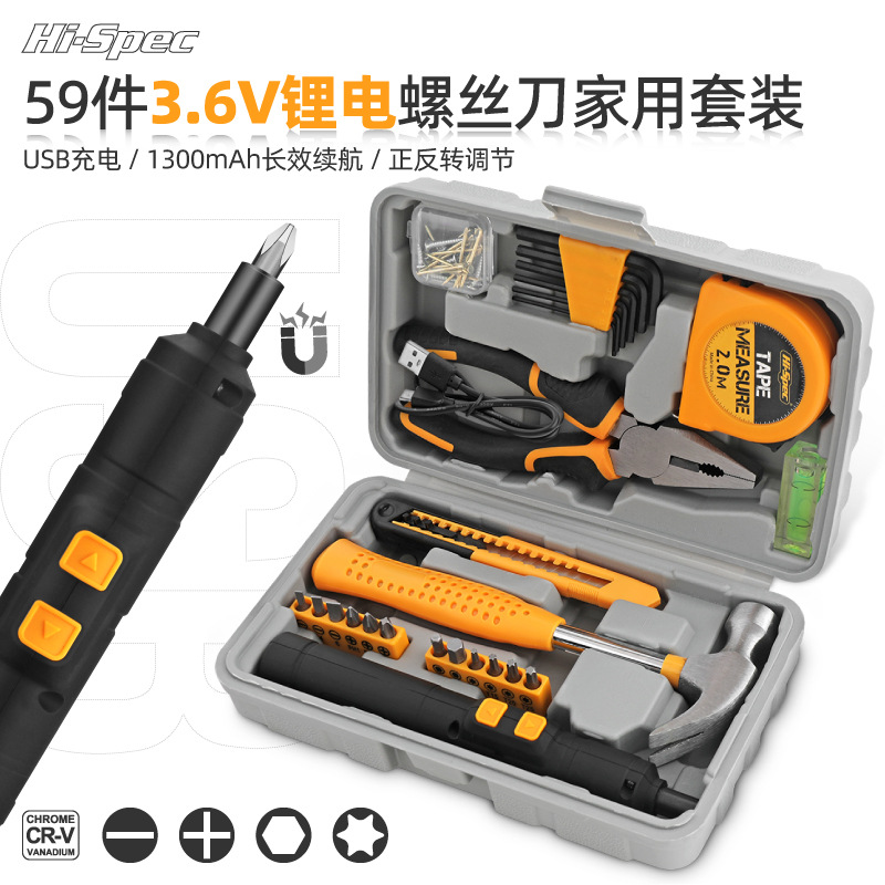 Setelan obeng listrik Hi-Spec 59 buah, tang alat rumah tangga, alat perbaikan palu, alat kombinasi perangkat keras
