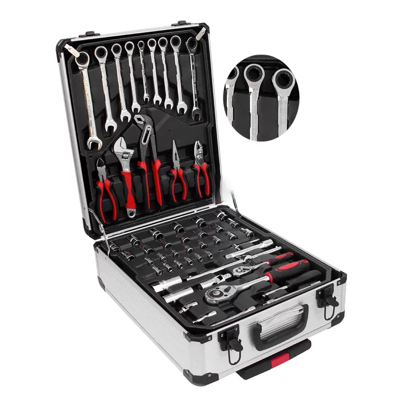 Set Alat Kombinasi 499 Set Batang Tarik Rumah Tangga Kotak Aluminium 187 Set Kotak Alat Kunci Kunci Terbuka Ratchet Perangkat Keras