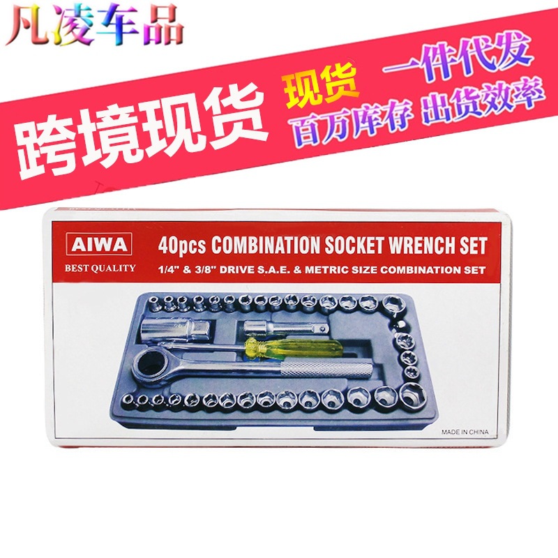 Kotak alat 40 buah untuk mobil satu bagian pengiriman persediaan mobil soket pasokan kunci pas kombinasi alat perbaikan