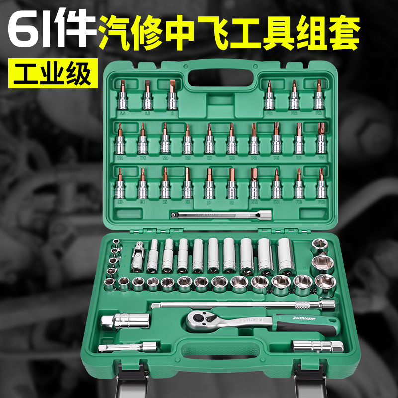 Setelan lengan terbang medium 61-potong, alat perbaikan otomotif, kunci pas soket seri 10mm 3/8