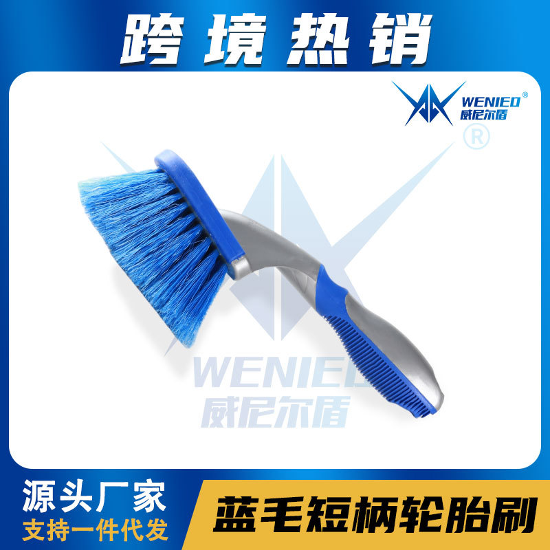 Kuas ban mobil lintas batas, sikat karpet hub roda bulu biru pegangan anti-selip alat khusus cuci mobil