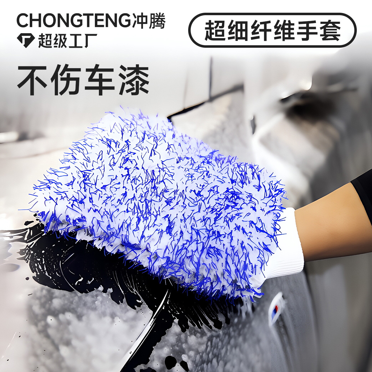 Sarung tangan chenille spons cuci mobil, sarung tangan 8 kata ekstra besar spons karang pembersih mobil penyerap kecantikan mobil