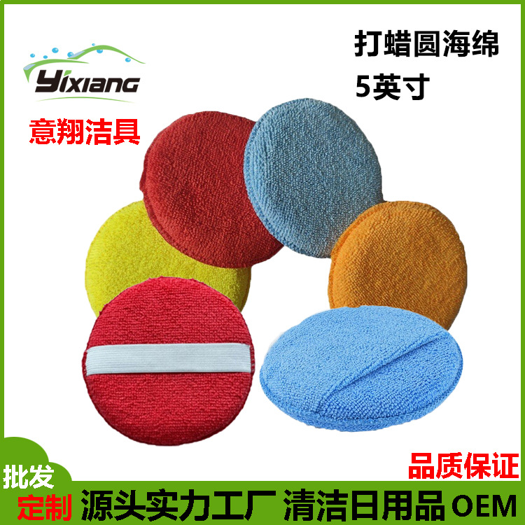 Spons pemoles mobil 5 inci, perlengkapan cuci mobil, spons penyemir blok spons penyemir mobil, kue waxing bulat 5 inci
