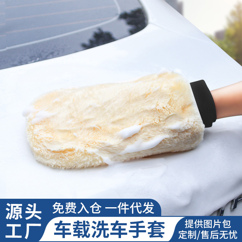 Sarung tangan kecantikan cuci mobil lintas batas, alat pembersih mobil tahan air tebal seperti wol dua sisi