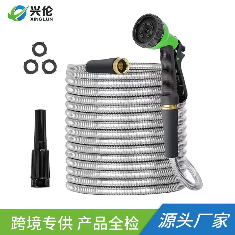 Cross-border khusus untuk rumah tangga standar Amerika pipa air taman baja tahan karat delapan fungsi setelan pistol air alat penyiraman cuci mobil