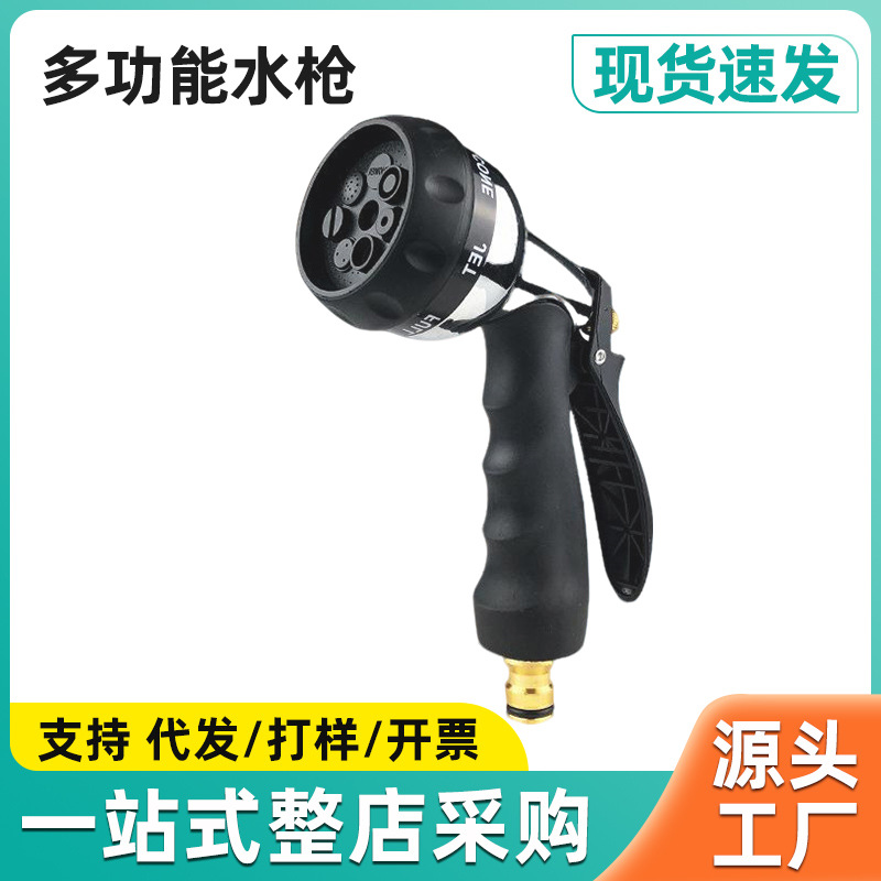 Rumah Tangga Eropa dan Amerika Delapan Fungsi Taman Penyiraman Bunga Cuci Mobil Pistol Air Grosir 8 Fungsi Perekat Sumber Pistol Penyemprot Air Adjustable