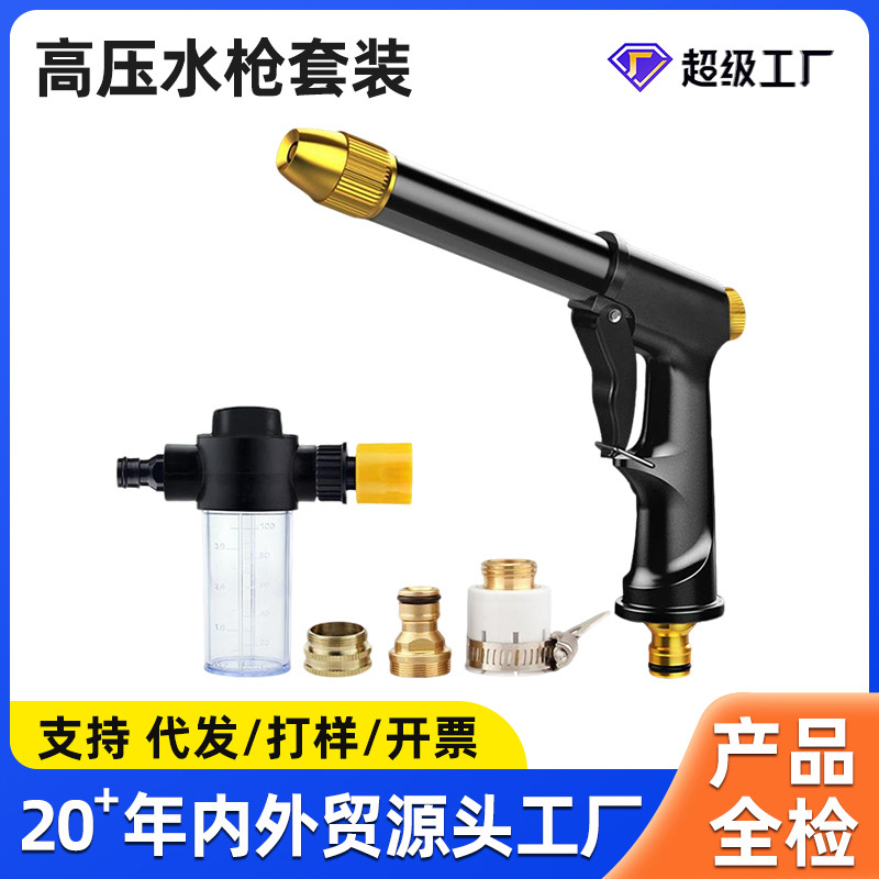 Mesin cuci mobil lintas batas, produsen pistol air bertekanan tinggi, tersedia pistol semprot tembaga penuh, set selang pistol air komersial, pistol panjang, pistol pendek