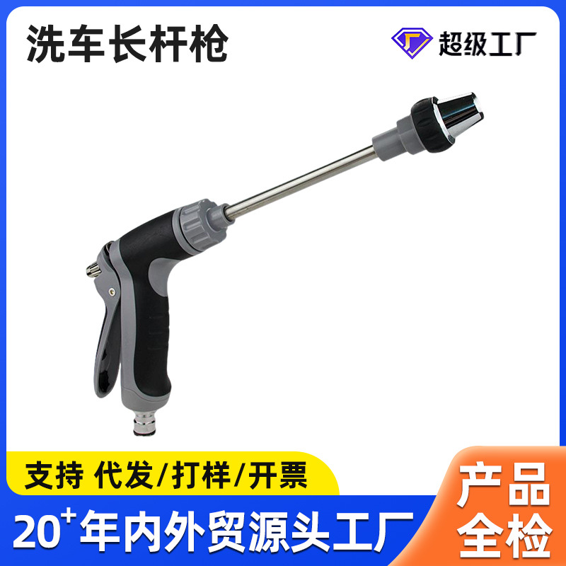 Pabrik langsung batang panjang pistol pistol air cuci mobil rumah tangga alat cuci mobil batang ekstensi logam dilapisi plastik menangani pistol air