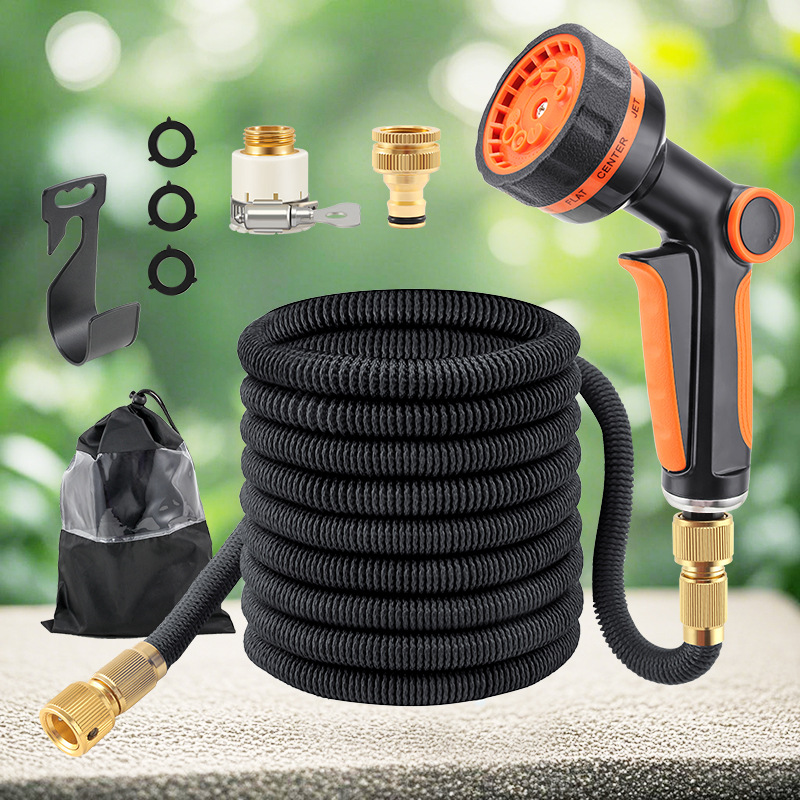 Pipa Air Teleskopik 3 Kali Model Baru Pipa Air Taman Air Tekanan Tinggi Pipa Air Cuci Mobil Taman Pipa Air Hitam Pistol Oranye Satu Potong Rambut