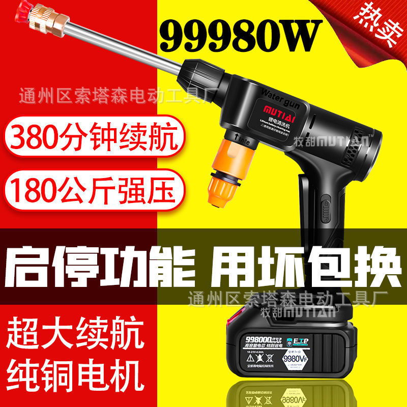 Mesin Cuci Mobil Luar Ruangan Portabel Model Panas Lintas Batas Pistol Air Cuci Mobil Nirkabel Ekor Nirkabel Daya Tinggi Baterai Lithium Daya Tinggi