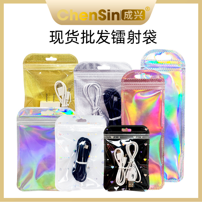 Tas aksesori rambut anting-anting tas laser merah muda flash sealing otomatis tas kemasan warna kuas makeup tas hadiah transparan