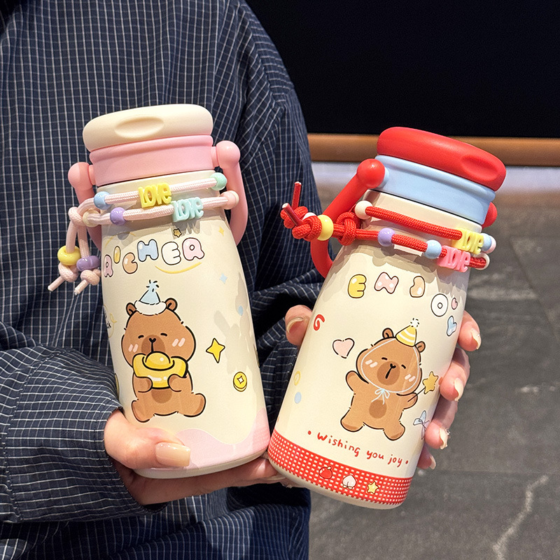 Mickey Strawberry Beruang Termos Wanita Nilai Wajah Tinggi 2024 Cangkir Air Anak-anak Model Baru Cangkir Es Kapasitas Besar Siswa