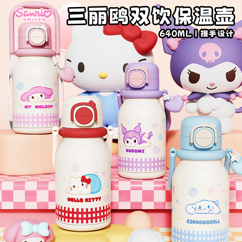三丽鸥提手保温杯儿童小学生上学专用吸管水杯子凯蒂猫美乐蒂水壶
