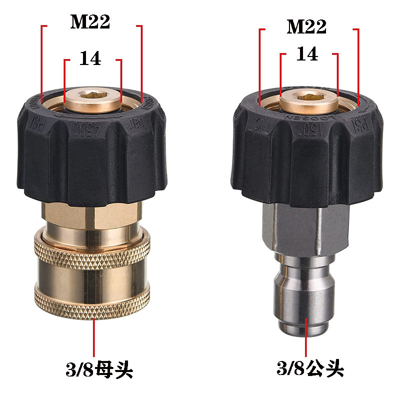 Mesin cuci 3/8 tekanan tinggi, konektor pipa air adaptor M22-14 set konektor tembaga tekanan tinggi grosir lintas batas