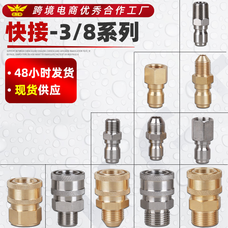 高压洗车机水枪自锁式快接头清洗机不锈钢3/8转换接1/4快快插接头