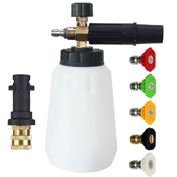 Adaptor mesin cuci tekanan tinggi, mesin cuci tekanan tinggi, busa, gelembung besar, pot PA dengan 5 kepala nozel 1/4 inci, adaptor pistol semprot konektor cepat