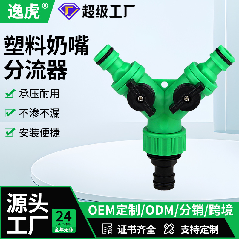 Konektor distribusi air keran kawat Luar 1 menit 2 splitter puting gigi internal 6 poin 4 titik hijau plastik pasokan pabrik