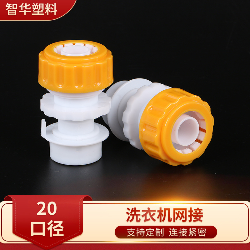 Mesin cuci plastik rumah tangga, konektor jaring cuci mobil, keran air taman, konektor rantai, konektor mesin cuci kuning