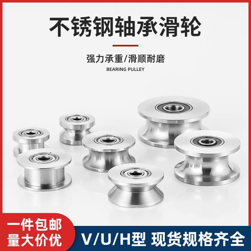 Katrol bantalan ganda tali kawat baja tahan karat 304, katrol tetap u v alur roda geser pintu geser roda pengangkat katrol tetap