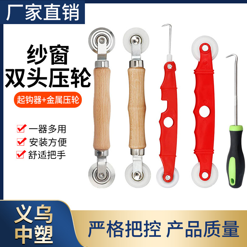 Layar multifungsi alat pengubah layar plastik, jendela roda tekanan berlian jala pegangan kayu jendela tekanan roda kait kasa tekanan