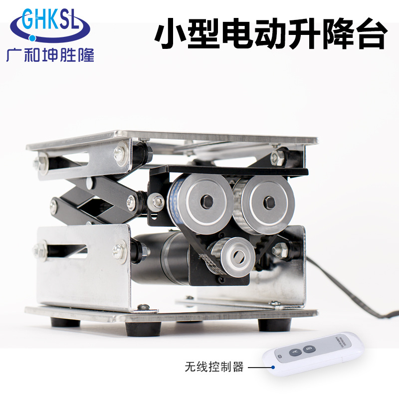 Platform pengangkat listrik kecil Guanghe Kunshenglong dari baja tahan karat, platform pengangkat laboratorium 200*200, pengangkat dengan remote control