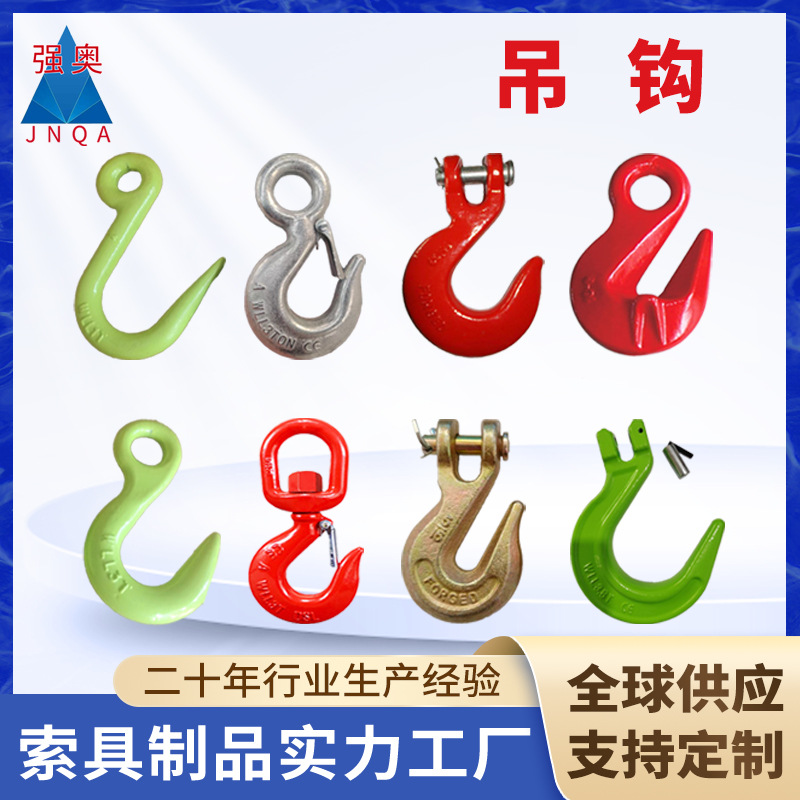 Pengait tanduk baja paduan dari produsen Qiangao pengangkat multi-spesifikasi pengait tanduk domba pengait mata kelas 80