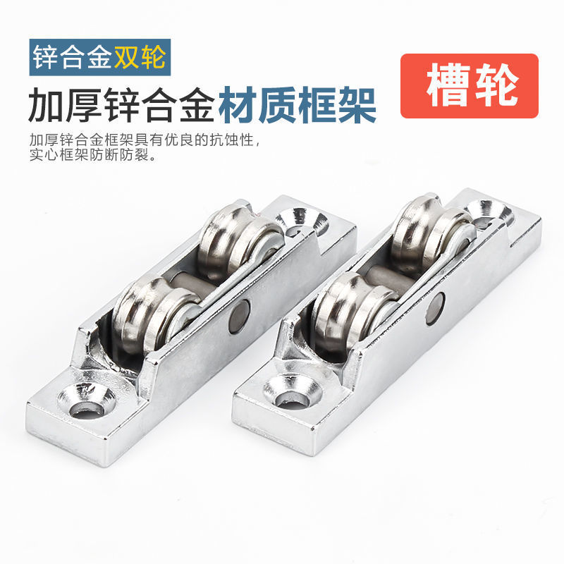 Pintu dan jendela baja plastik, roda datar ganda, pintu kaca, rol ganda dapat disesuaikan, tipe 77, rol alur ganda, logam campuran seng tebal